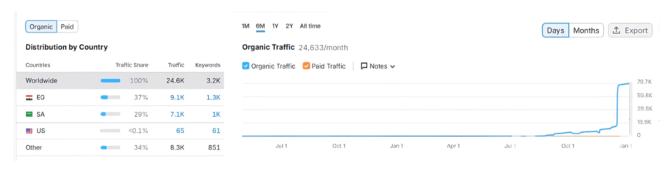 زيادة عدد الزيارات العضوية: ارتفع من 8.4K إلى 68.8K شهريًا، بمعدل نمو 719%.