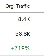 Organic traffic growth: Increased from 8.4K to 68.8K monthly visits, a growth rate of 719%.